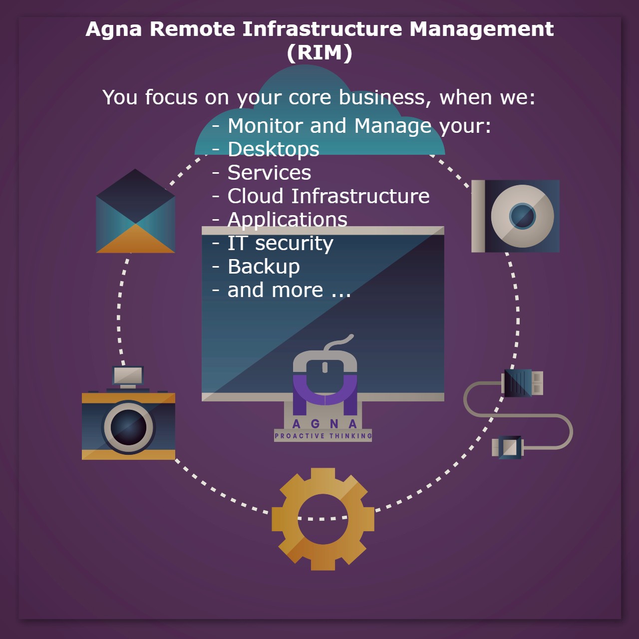 With Agna RIM team as your IT support partner, you just an administrator who can help our team when any physical task is involved in configuring or resolving an issue. Our team does: