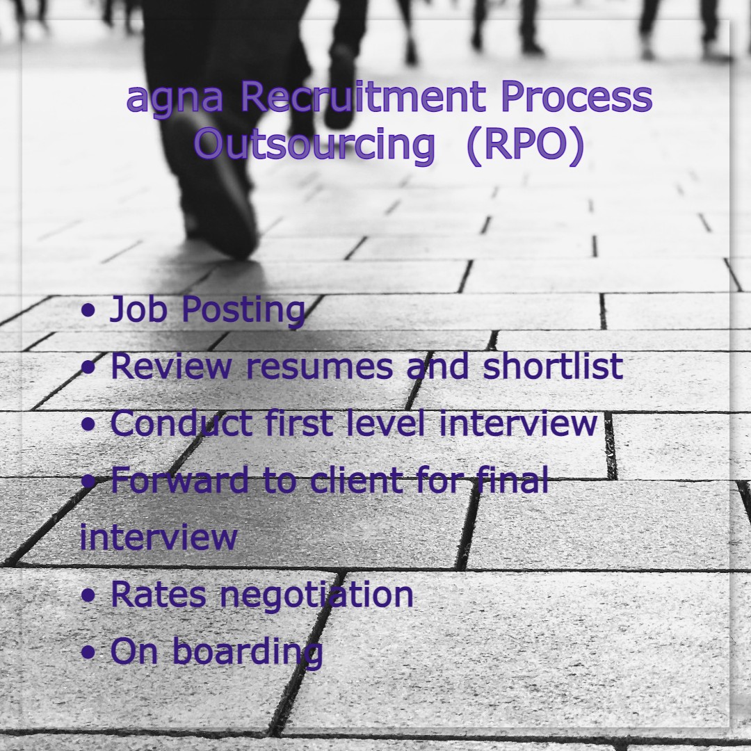 Recruitment Process Outsourcing (RPO) is where a third-party like Agna is used to manage all or some part of a company's recruitment process.